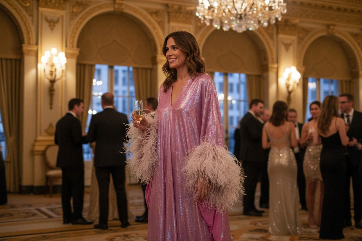 MARAYA Sparkle kaftan feather dress, Party Dress, beach cover-up, Robe and Feather option, Feather robe option