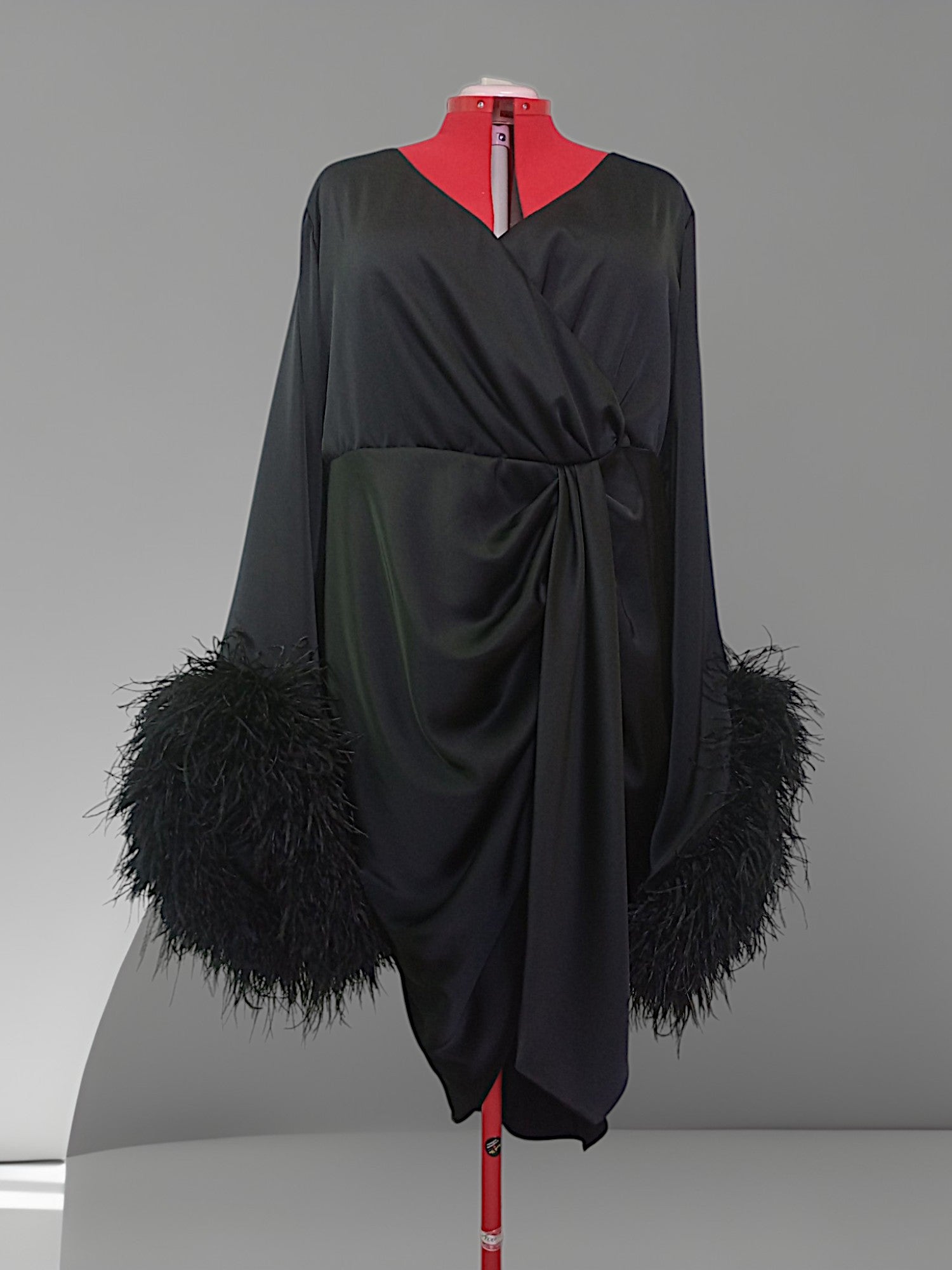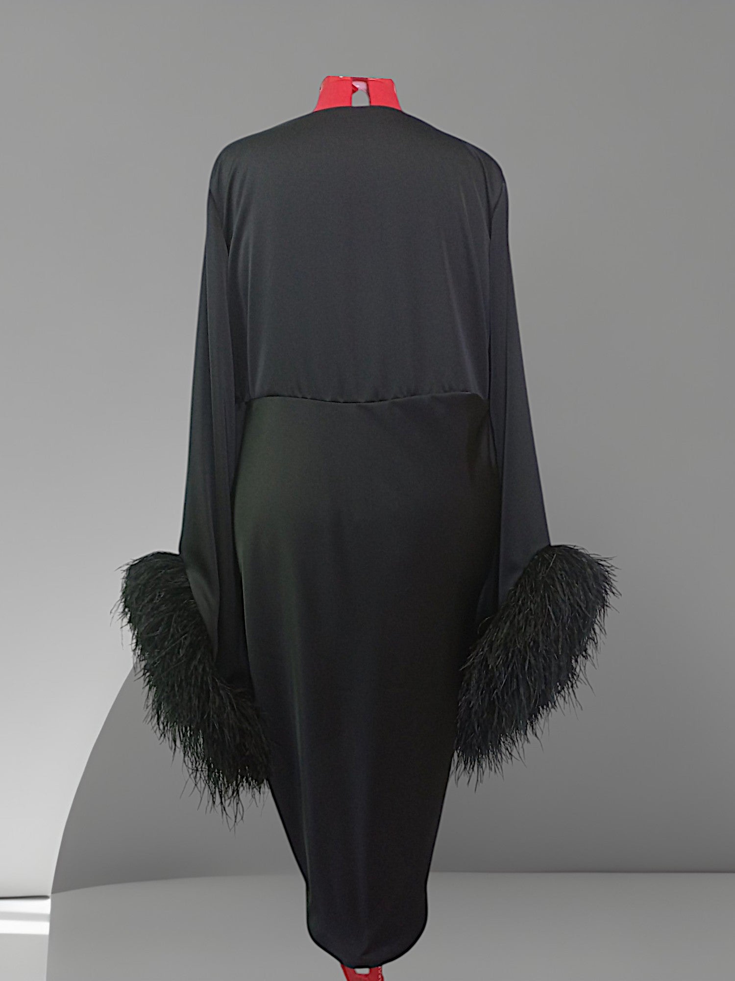 MARAYA Black Feather Midi Dress, Black Vulture Dress