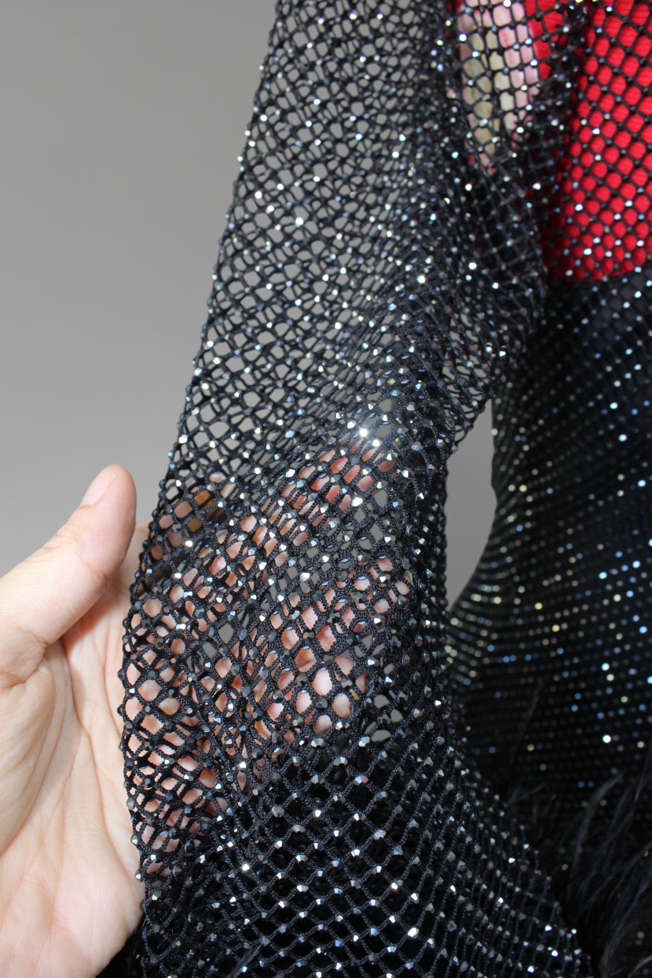 ▪️Stretch mesh, No zipper, Decorate with feathers around the wrist and Bottom
